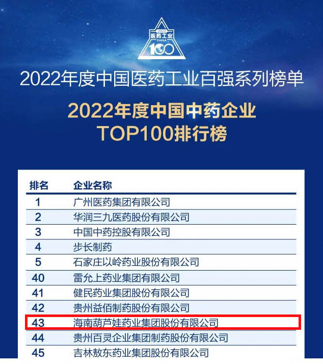 尊龙官方网站药业集团连续4年荣登“中国中药企业TOP100排行榜”,排名上升至第43位